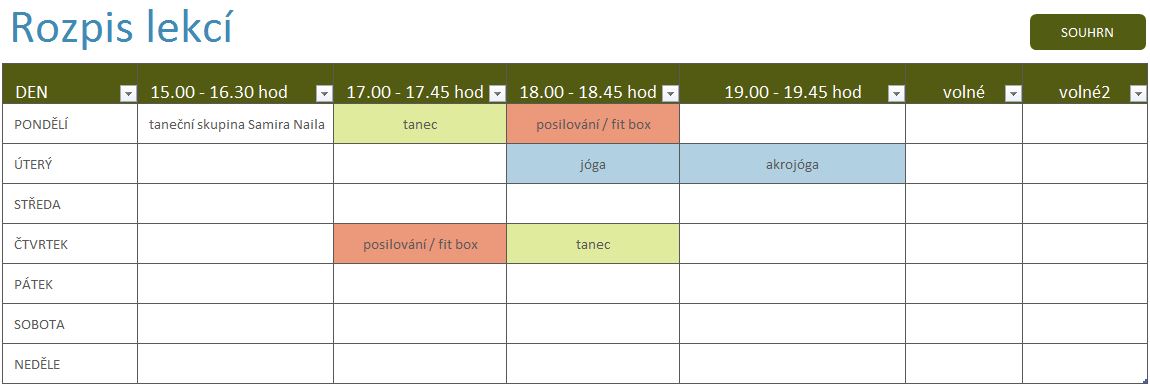 Lichý týden bude v pondělí posilování a ve čtvrtek fit box, sudý týden naopak.